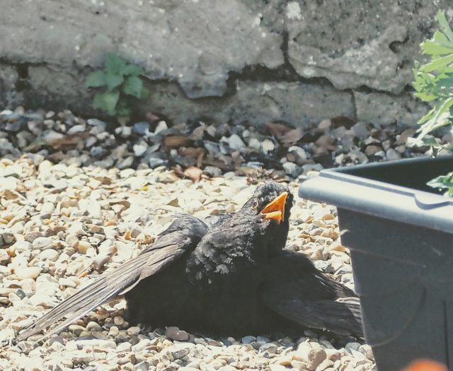 a blackbird “sunning” itself in next door’s front garden (not sick and dying) – who knew? I had to look it up – to do with feather upkeep and hygiene apparently