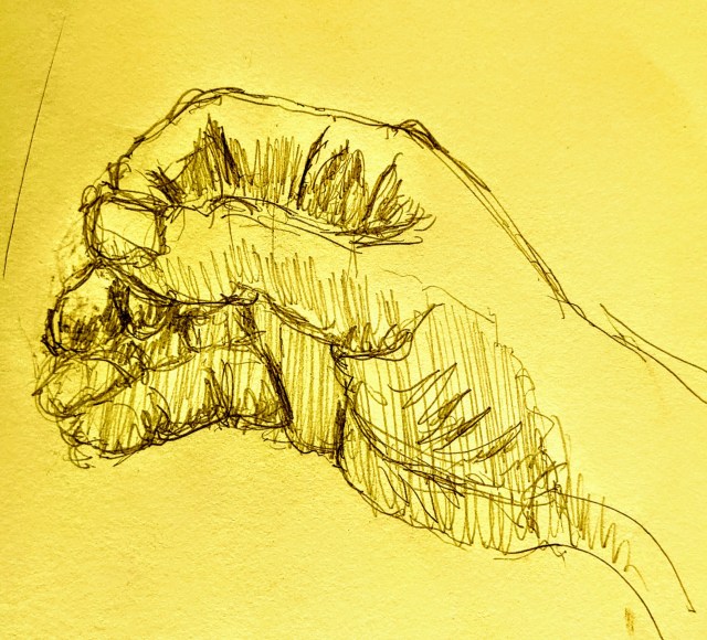A few fast scribbles of my hand (sitting in the sun). Between the glare of the sun, the harsh shadows and my sunglasses, I was partially unsighted and not able to see exactly what I […]