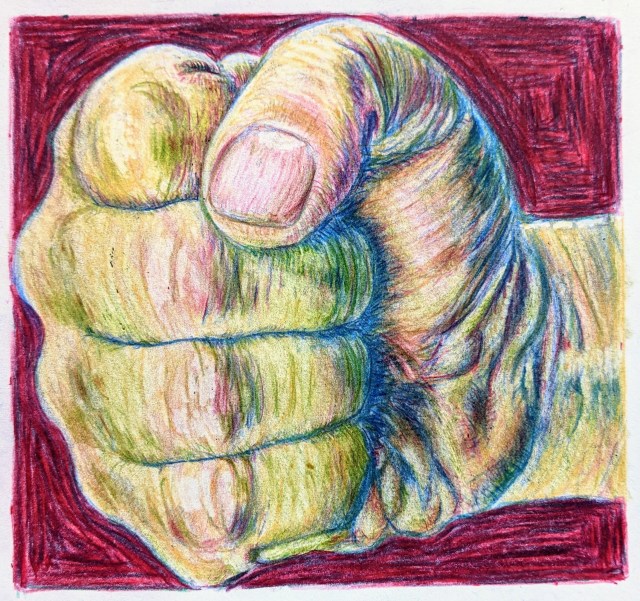 I struggled to make any “pleasing” marks with this one (pen dangling from finger tip grip/elbow and upper arm fixed). I tried with soft pencil, then charcoal pencil, then felt-tip, then marker. I thought I […]