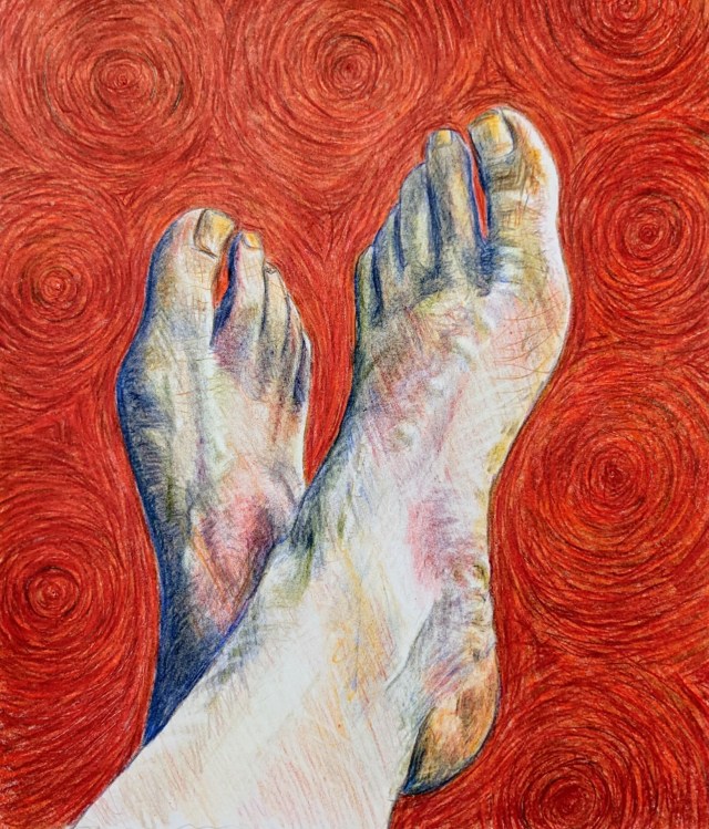 My feet. I found my feet a more difficult subject than my hands – perhaps because I look at them a lot less that at my mitts. The red drawing follows on directly from my […]