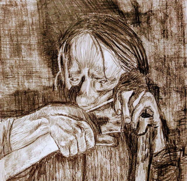 A study of Käthe Kollwitz’s Whetting the Scythe – pencil and charcoal. I lost concentration here when doing the initial sketching out and have ended up with an elongated composition – the original is roughy […]